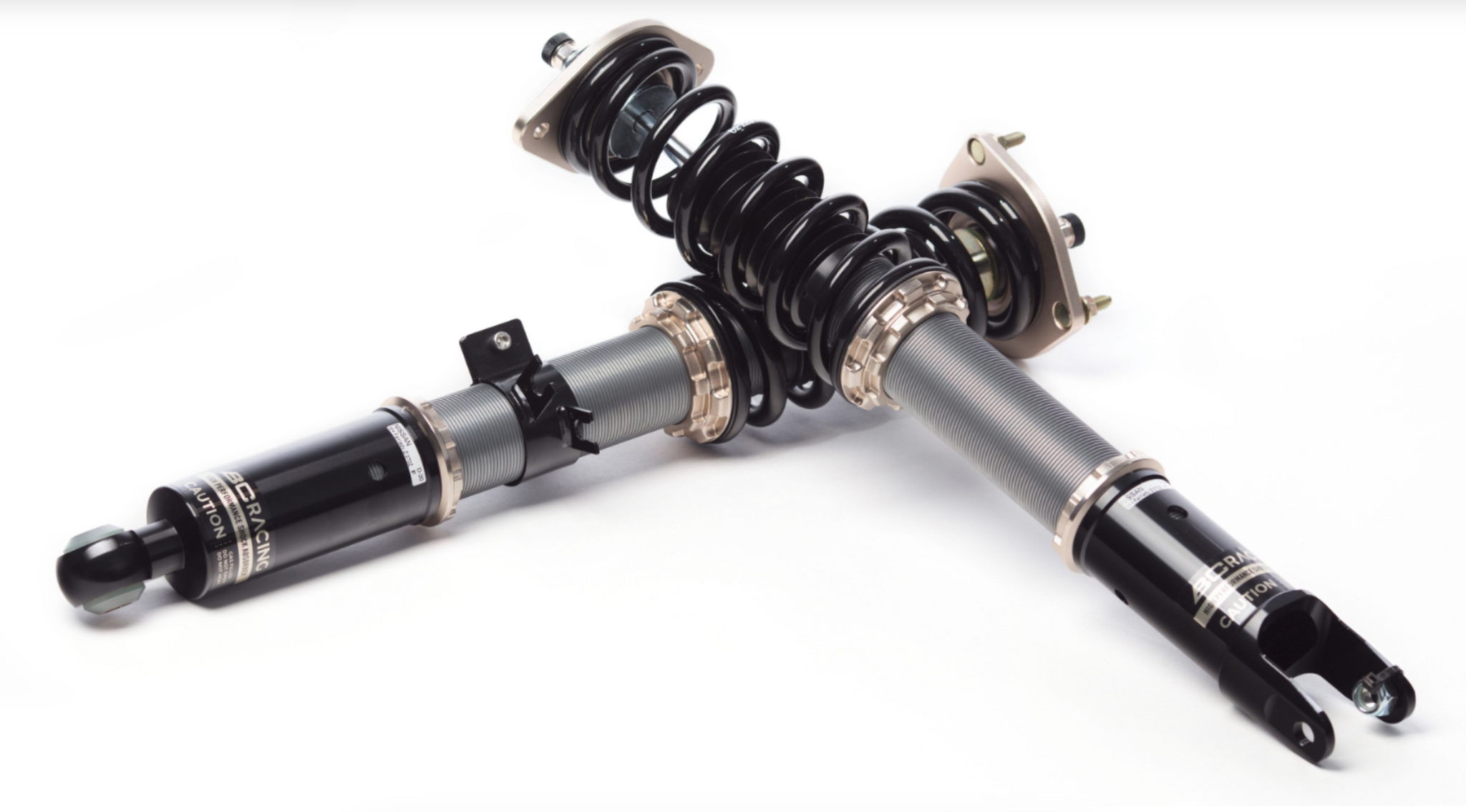 BR Series (F-20-BR): 30 clicks of simultaneous rebound/compression adjustment. Linear piston damping curve, well balanced coilover, excellent option for track use. Usually in stock at BC North America, 2-3 week lead time.
